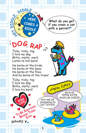 Kids who love pets will love this book chock full of corny pet jokes, rhymes, riddles, raps, pet gossip, advise collumn, cartoons, just plain fun and lots of giggles! They'll find out what happened to the cat that ate a ball of yarn, why dogs are like telephones and the favorite colors of dogs and cats! Sing-song-y rhymes about character values entertain children and help them remember the traits that build a strong Backbone of Character.