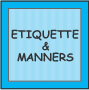 Etiquette and Manners are the codes of behavior that society expects us to live by. They’re behavior standards that we expect everyone to follow and are based on being kind to everyone and treating them like we would like to be treated. They also get specific about the way we act in given situations. All members of a family are expected to have manners - even the pets!