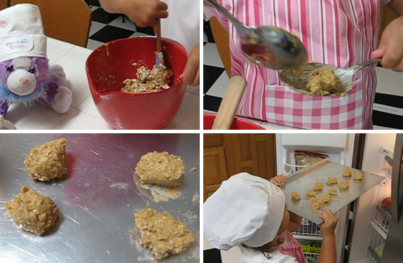 Scoop out a large spoonful of the mixture and roll into a small ball. Place the balls on a cookie sheet and freeze 3-4 hours or until hard. Remember, these are for your puppy, you have to ask him if he’ll share with you!